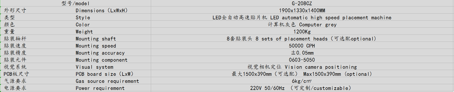 12. 可貼裝電路板最大面積:1500MM*390MM