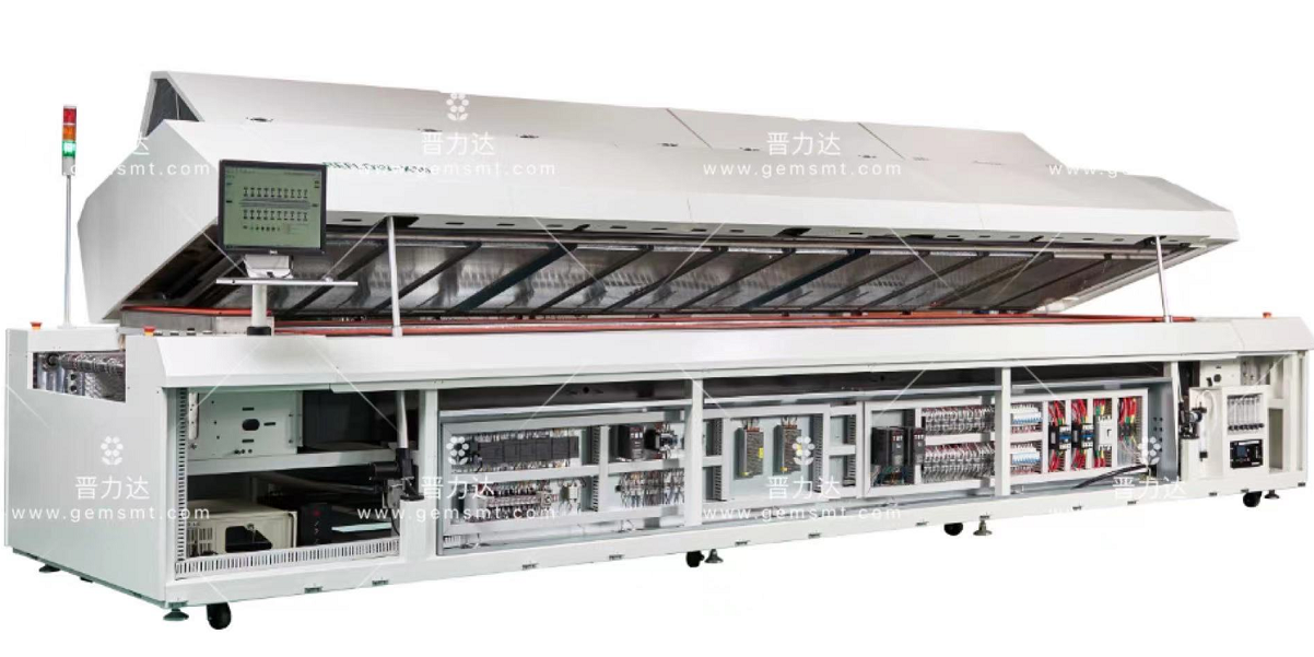 在目前所使用的大多數爐子都是強制熱風循環型的,在這種爐子中控制氮氣的消耗不是容易的事。有幾種方法來減少氮氣的消耗量,減少爐子進出口的開口面積,很重要的點就是要用隔板,卷簾或類似的裝置來阻擋沒有用到的那部分進出口的空間,另外種方式是利用熱的氮氣層比空氣輕且不易混合的原理,在設計爐的時候就使得加熱腔比進出口都高,這樣加熱腔內形成自然氮氣層,減少了氮氣的補償量并維護在要求的度上。了解氮氣回流焊配置特點請點擊:氮氣回流焊