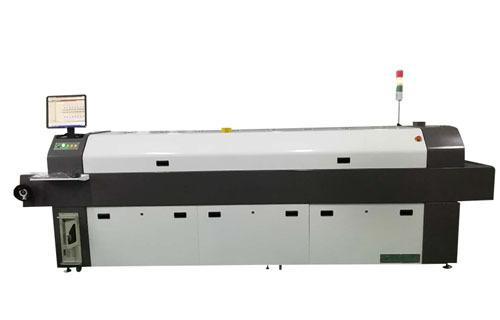 3.按照順序先后開啟溫區(qū)開關(guān),等待溫度升到設(shè)定值時(shí)可開始過PCB 板,過板注意方向,保證傳送帶的連續(xù)2塊板之間的距離要大于10mm,