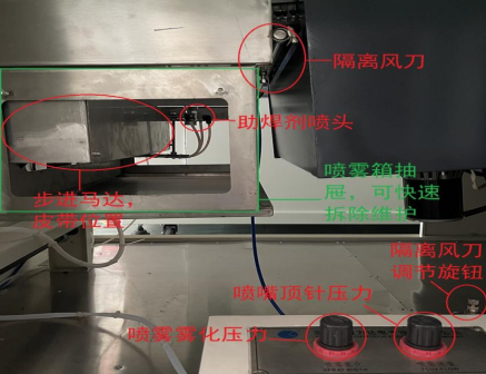 2、每周清理一次助焊劑箱抽屜內松香殘留物,助焊劑箱上端過濾網,助焊劑噴頭外表擦拭干凈。