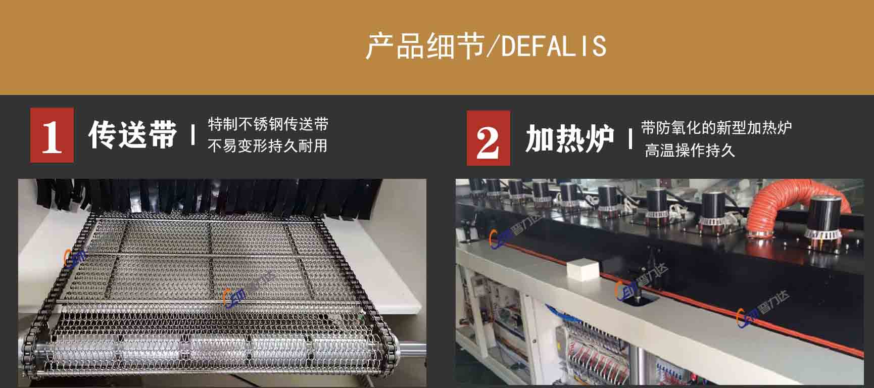 ●高精密承重人字形網帶傳動支撐結構,特殊硬化處理,可承重80KG-100KG產品不變形