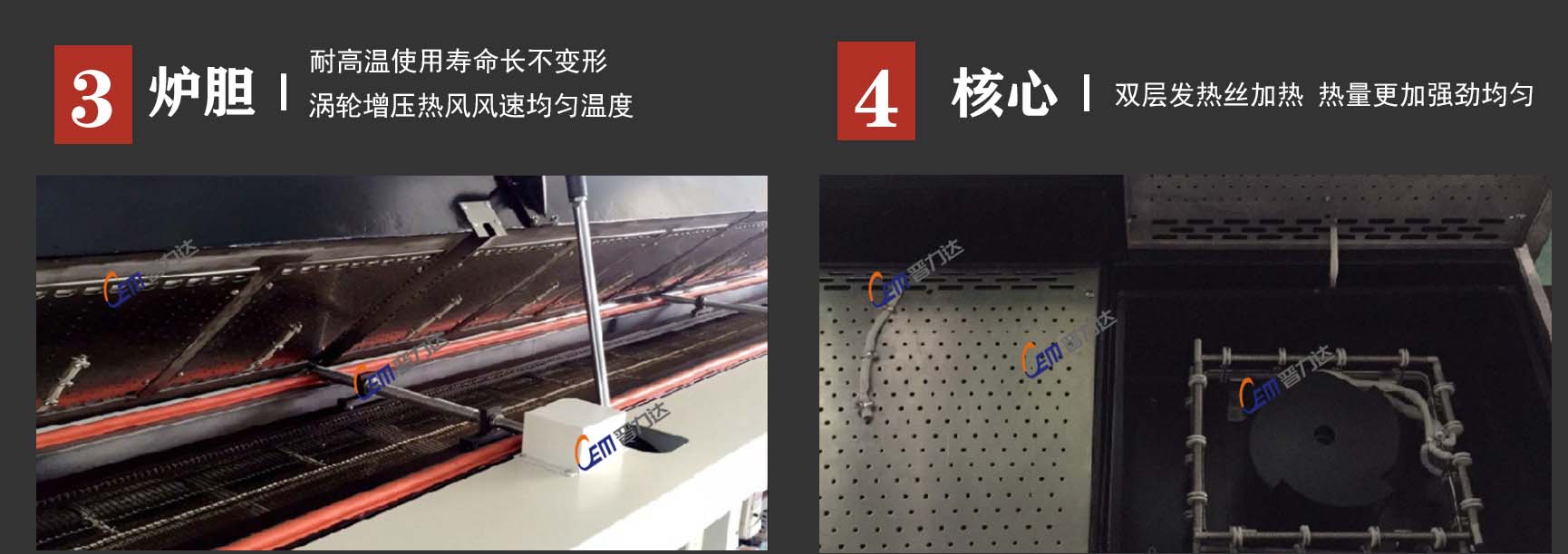 3 各溫區采用強制增壓熱風,獨立PID控制,上下對流加熱方式,使爐腔溫度準確,均勻,熱容量大;行業先進的熱管理系統, 解決了回流焊焊接時的死角難題.適合CSP、BGA、0201CHIP等電器元件的焊接;