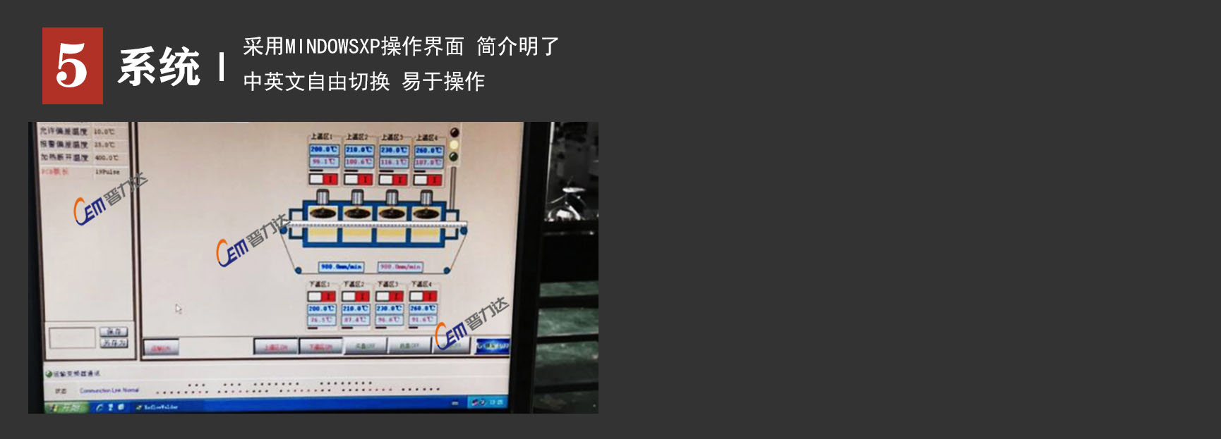6 Windows 視窗操作系統,中英文界面,操作人性化,簡單;電腦控制與緊急手動停止按鈕,具有安全保障功能