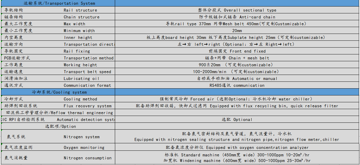 ● 獨立控制的冷卻系統,兩區強制常風/外置冷水機冷卻可選,進口不銹鋼制作,上下冷卻對流,冷卻后的曲線與焊接溫度曲線成鏡像,完全符合SMT國際認證標準