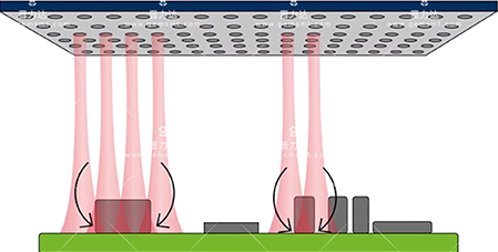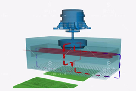 7、由于先進的孔噴嘴幾何形狀,出色的熱傳遞以及加熱模塊中可監控的可調超壓,保證均勻和無間隙的熱傳遞到電路板。整個過程可以保證惰性工藝氣氛焊接過程,因為是封閉的系統,沒有外部空氣進入處理室。 熱流在系統內通過循環發生,即過程預熱和峰值區域的氣體被提取,清洗并從側面重新插入過濾網。
